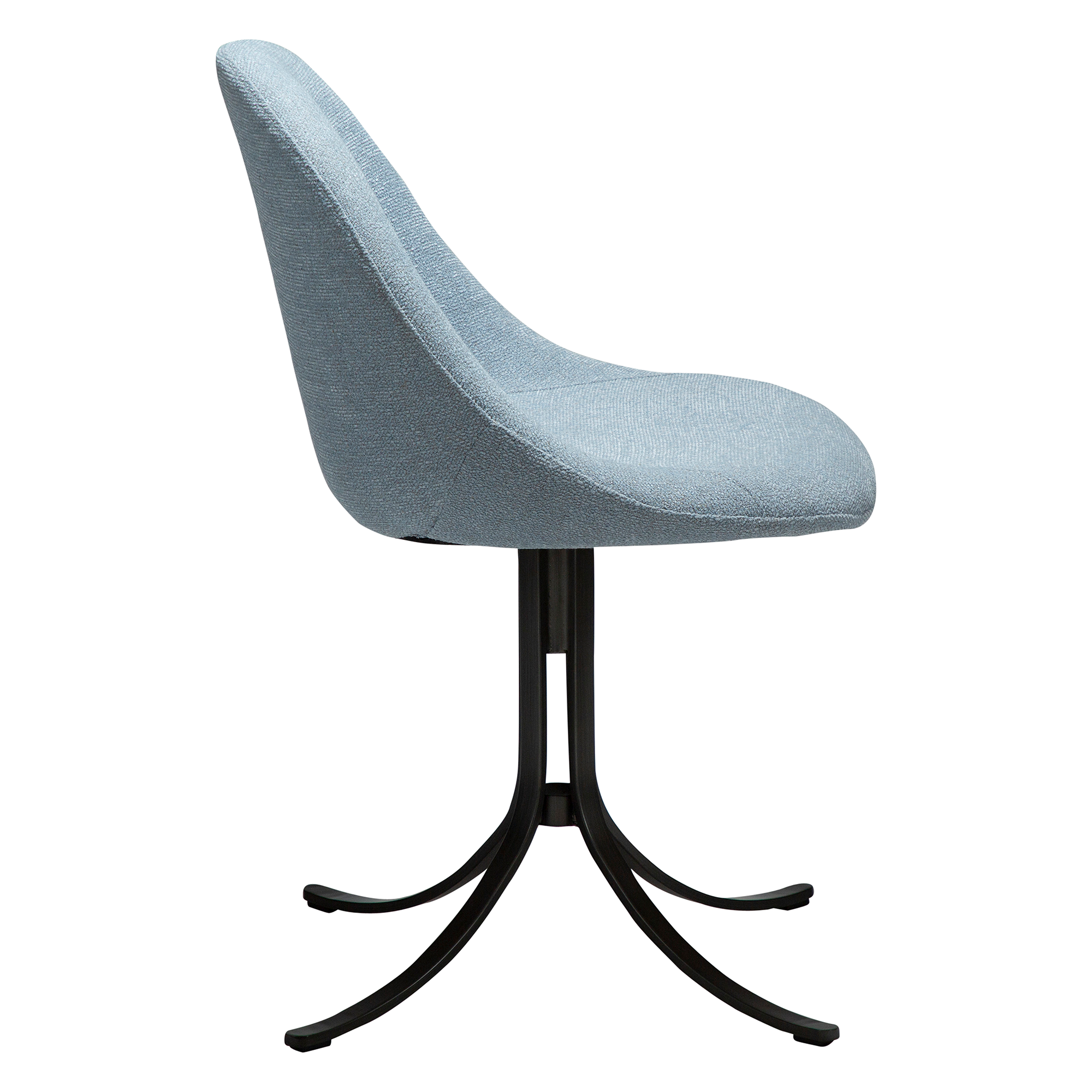 DOLO kėdė yra rafinuotos elegancijos įkūnijimas. Minkšta audinio sėdynė ir atlošas, kuris kartu su trimito formos kojelėmis primena ikonišką viduramžio estetiką. Pasukamos kojelės siūlo patogią automatinio grąžinimo funkciją.