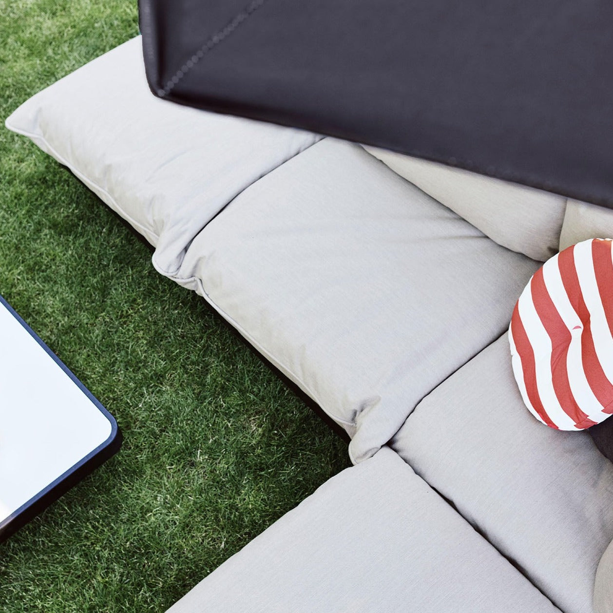 Medžiagos: Audinys olefinas ; užpildas hibridinės putos, susmulkintos putos (mišrios ir perdirbtos medžiagos); nerūdijantis plienas dažytas milteliniu būdu; polipropilenas.