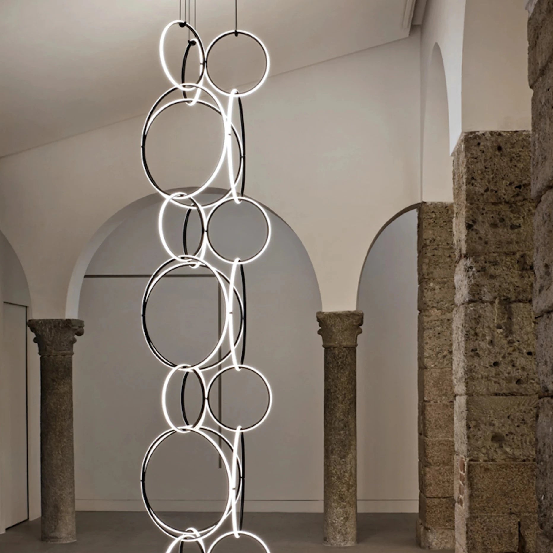 Moduliai – tai elegantiškos geometrinės formos, tokios kaip apskritimai, lašai ar linijos, pagamintos iš anoduoto aliuminio su integruotu LED šviesos šaltiniu. Jų jungimas tarpusavyje primena papuošalų komponavimą – kiekvienas elementas įsilieja į bendrą visumą, sukurdami šviesos instaliaciją, kuri tampa erdvės centru.