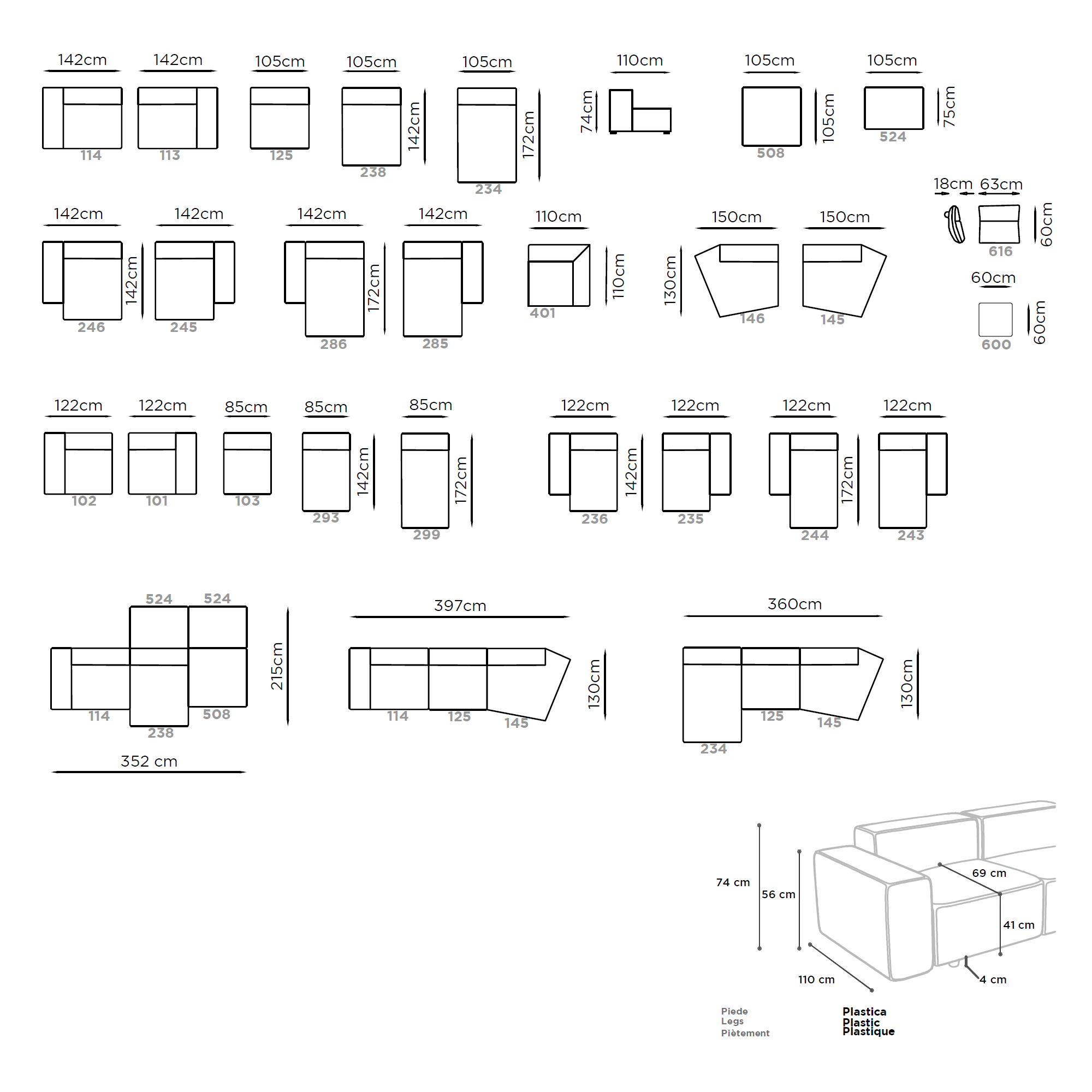 Galima rinktis iš įvairių Franco Ferri audinių bei natūralios odos. Galimos įvairios sofos konfigūracijos. Dėl platesnės informacijos susisiekite el. paštu arba atvykite Siesikų g. 14, Vilnius.